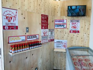 冷凍ショーケースの中から、包装された冷凍餃子をお取りいただき、代金を店内に設置された料金箱に投入するという販売形式となっています。